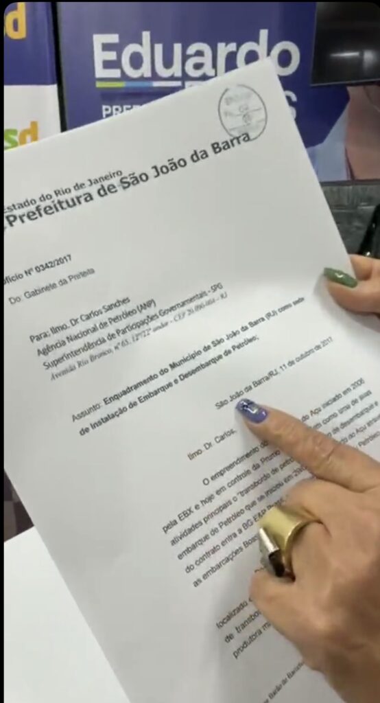 A deputada estadual Carla Machado ainda não confirmou o partido no qual vai disputar a reeleição em outubro, após sair do PT. Porém, o vídeo no qual ela anunciou uma vitória na ANP que garante mais de R$ 236 milhões em royalties retroativos para a região, deixou aparecer que a sala na qual ela fez a transmissão ao vivo, nesta quinta-feira (2), era um reduto do PSD e do pré-candidato a governador Eduardo Paes (PSD).